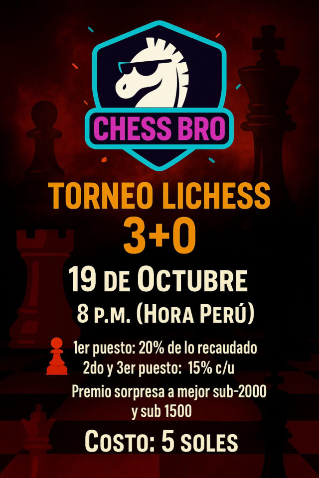Inicio Convocatorias Lichess.- 5to torneo premiado de CHESSBRO!!!, 19 oct 2025