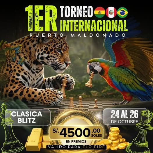 Del 24 al 26 de octubre, Puerto Maldonado será la sede del 1er Torneo Internacional de Ajedrez ♟️