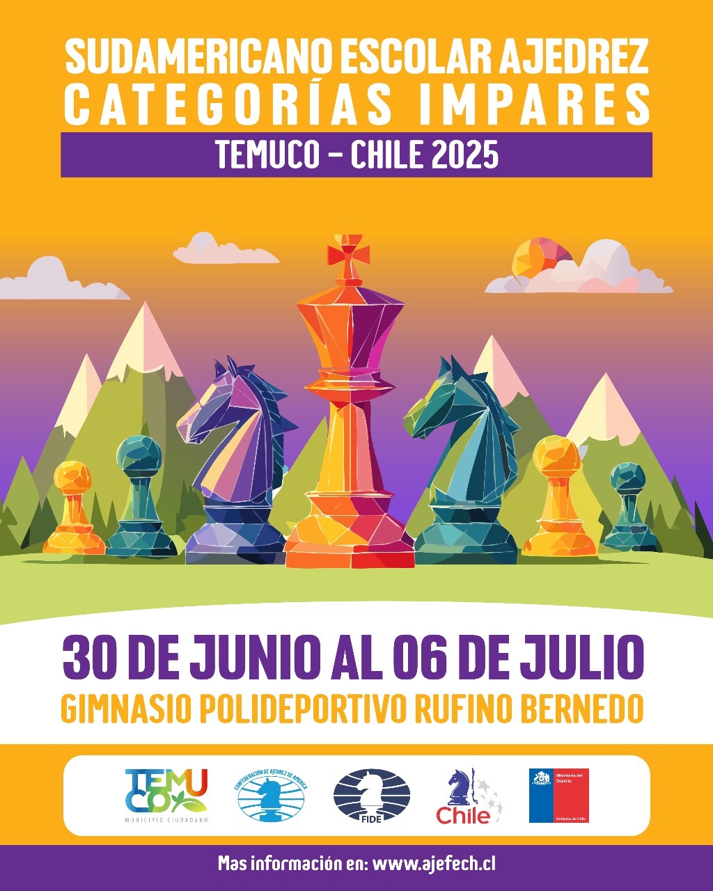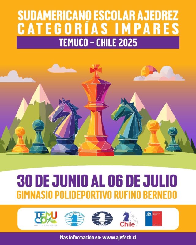 Temuco, 20 de junio de 2025 — Se siente la efervescencia en el ambiente a pocos días del inicio del Sudamericano Escolar de Ajedrez Categorías Impares Temuco 2025, un evento que marcará un antes y un después en el ajedrez escolar chileno. Casi 300 jóvenes ajedrecistas provenientes de Argentina, Bolivia, Brasil, Colombia, Ecuador, Perú, Venezuela y Chile se enfrentarán en el tablero con el sueño de conquistar el título sudamericano.